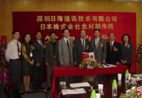2004年4月13日,公司与日本株式会社北村制作所就户外一体化机房的设计、生产、销售和服务在公海彩船公司智能签订了合作协议,共同合资组建深圳北村公海彩船公司机房技术有限公司,并举行了隆重的签字仪式。公司周展宏董事长、王文生总裁、杨飞董事、机房事业部负责人孟庆光和日本北村制作所北村泰作...