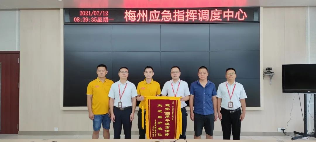 活动当天,各传输枢纽值守、干线盯防、仪表、车辆、应急物资全部到位,除落实安全人员24小时值班机制外,公司还部署实施了态势感知、应急响应、持续安全评估、安全监测巡检等措施,实现重保期间网络安全零事故。为此,公海彩船公司通服被中国联通梅州市分公司授予“建党100周年通信保障先进维护单位”的荣誉锦旗。